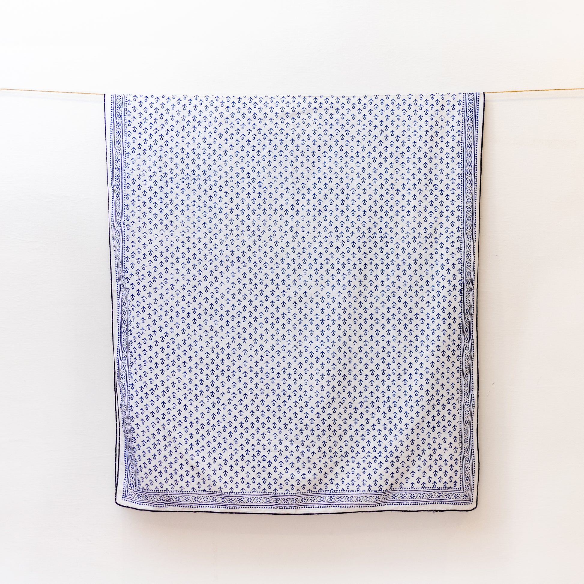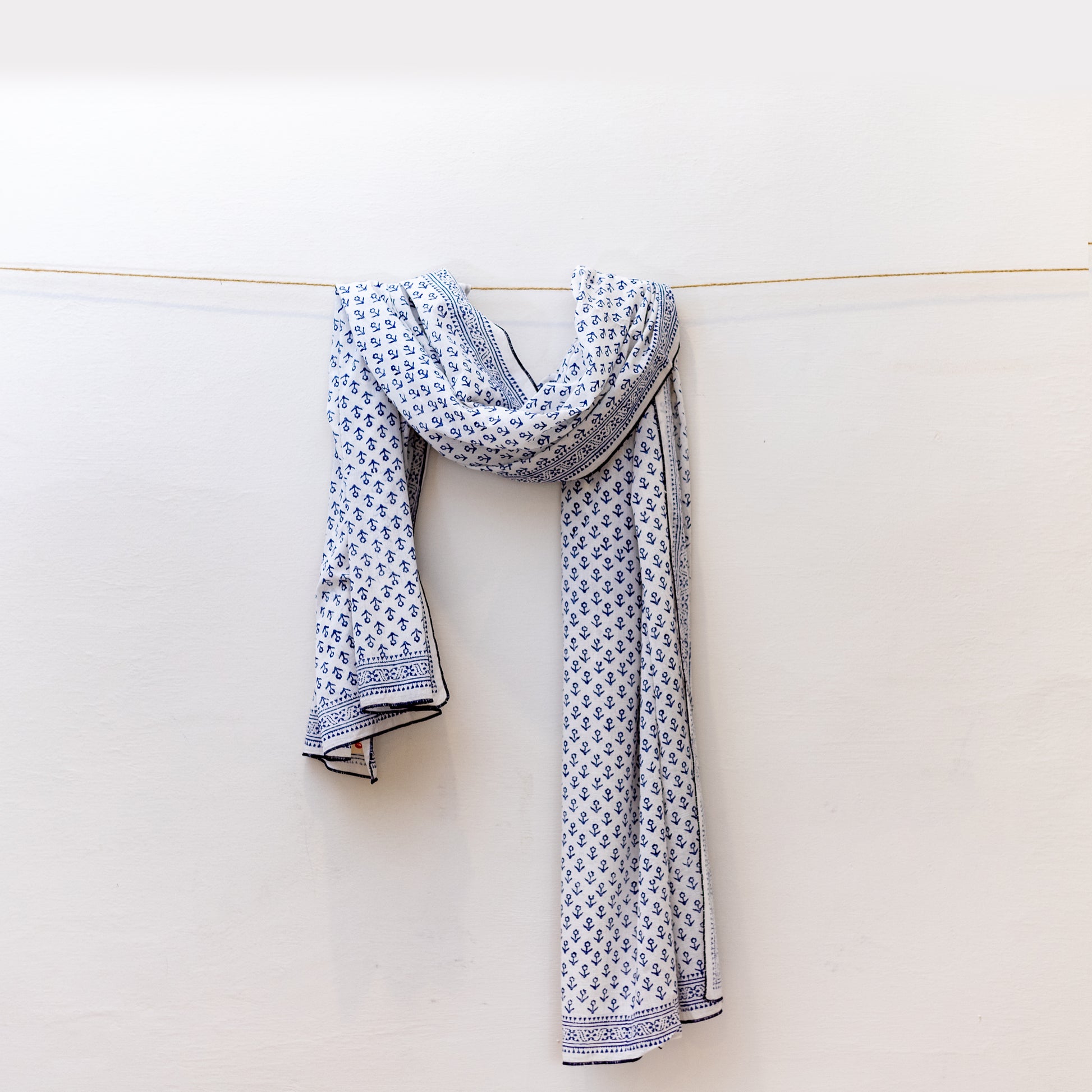 This white Ajrak dupatta is beautifully hand-block printed with blue anchor motifs, symbolizing grounding and stability. Its soft texture and minimal elegance make it perfect for everyday wear or styling with traditional outfits.