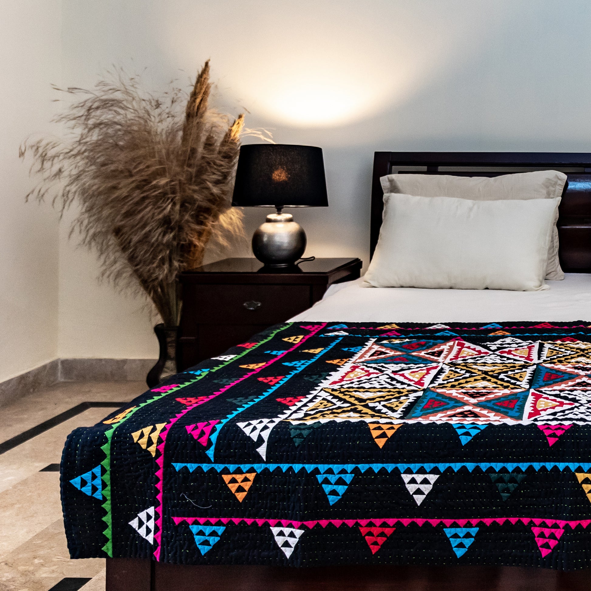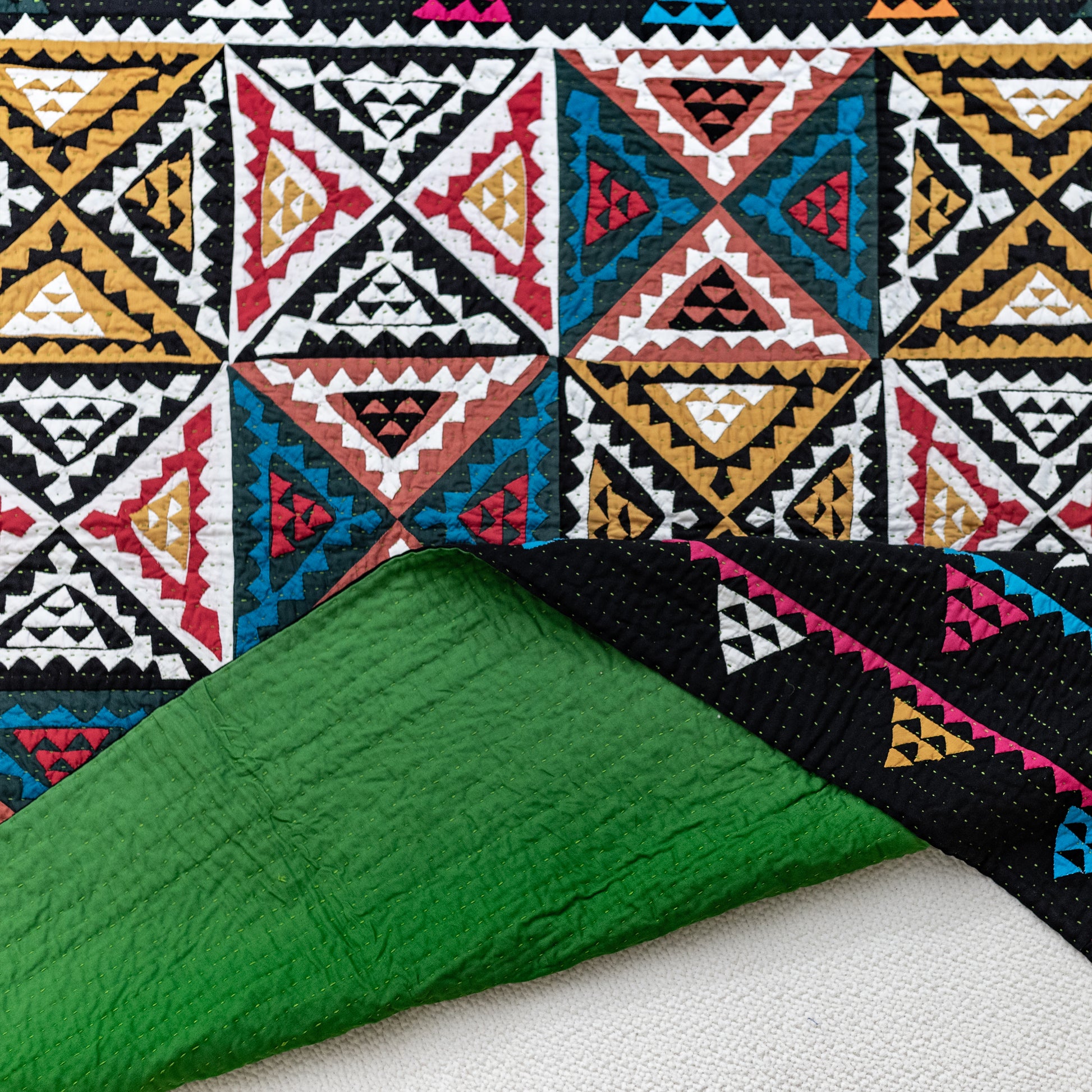 A vibrant celebration of heritage, the MKK Rilli features bold geometric patterns in rich, earthy tones.