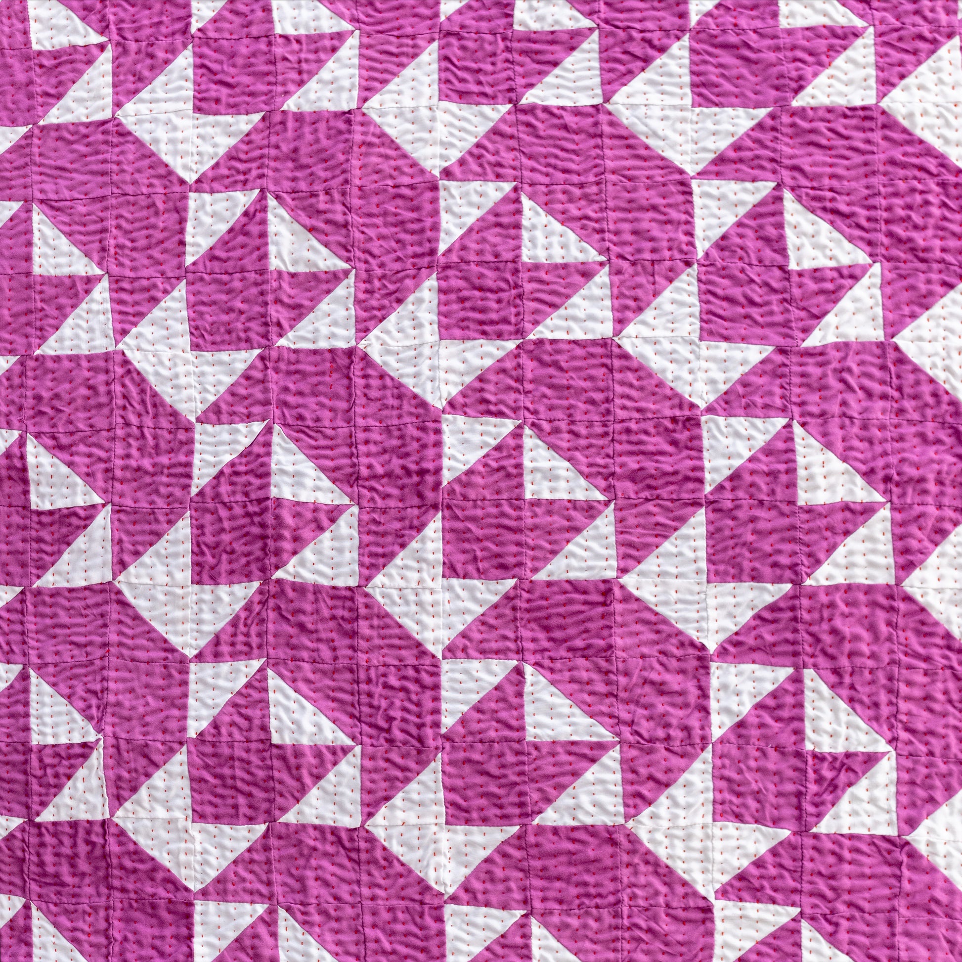 A soothing blend of lavender and white in a bold sail boat pattern, contrasted beautifully with a red floral back print. A charming statement piece for any space — handmade by rural female artisans.