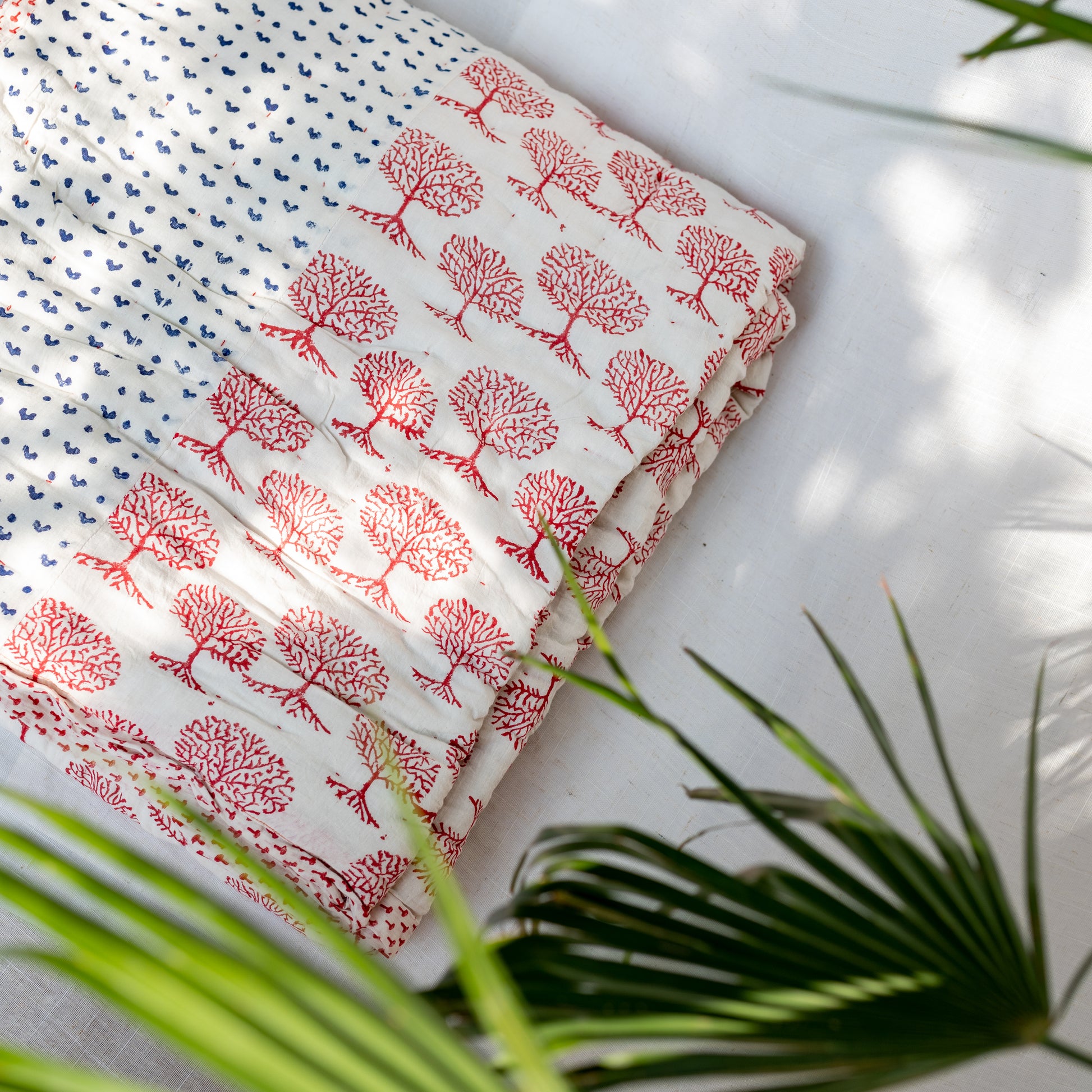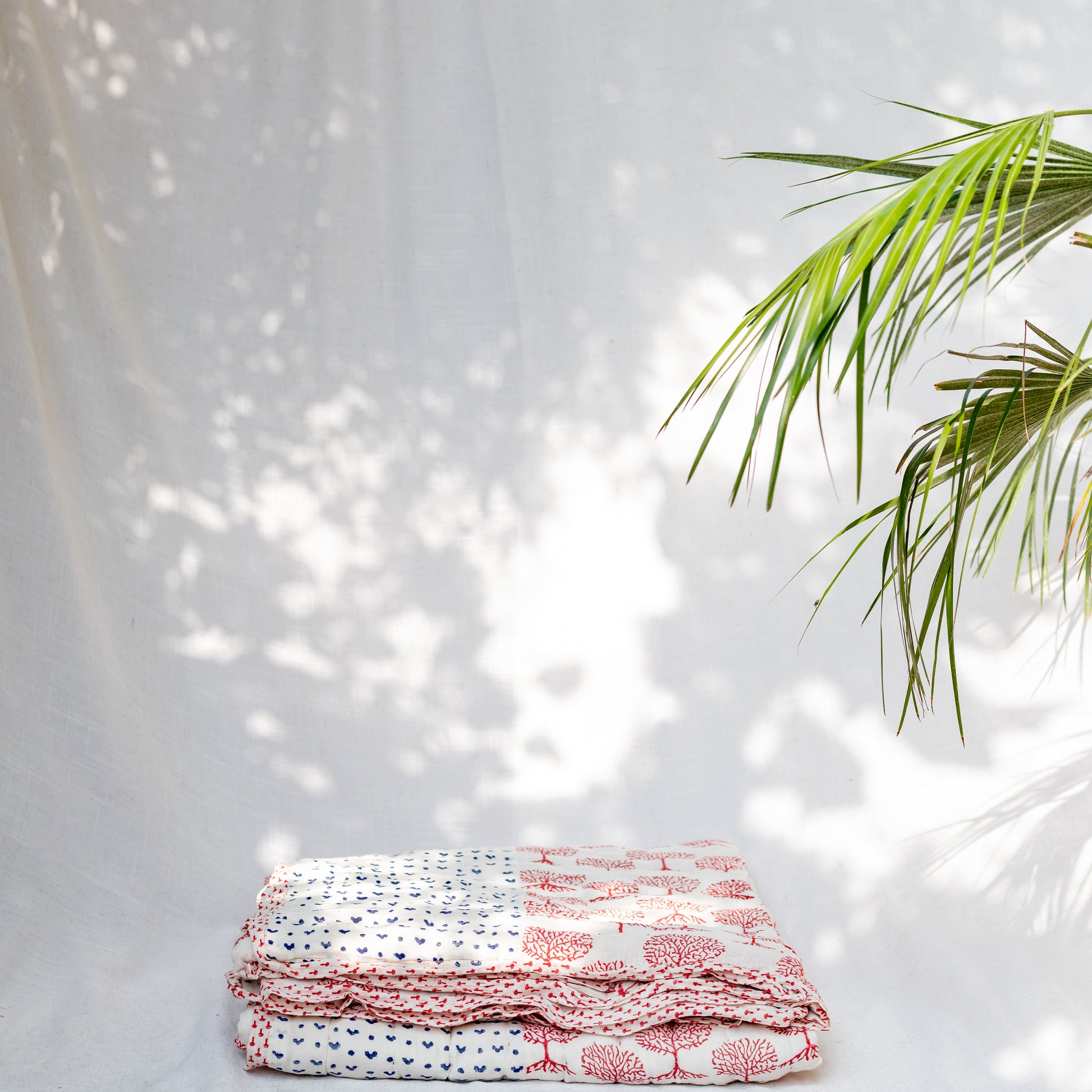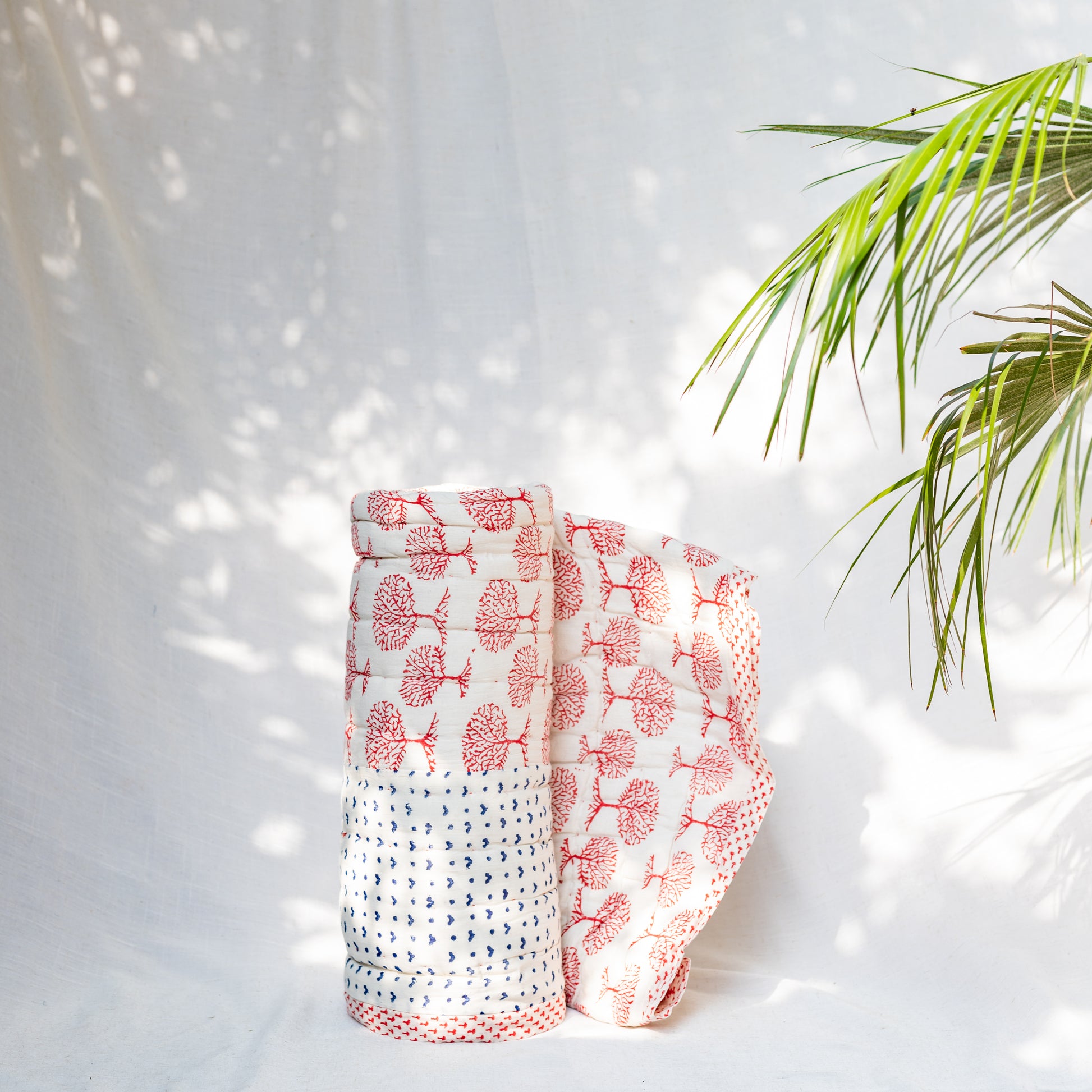 Tree of Life Dulai Single sized ivory dulai adorned with red Tree of Life blockprints, beautifully detailed with a patterned back.