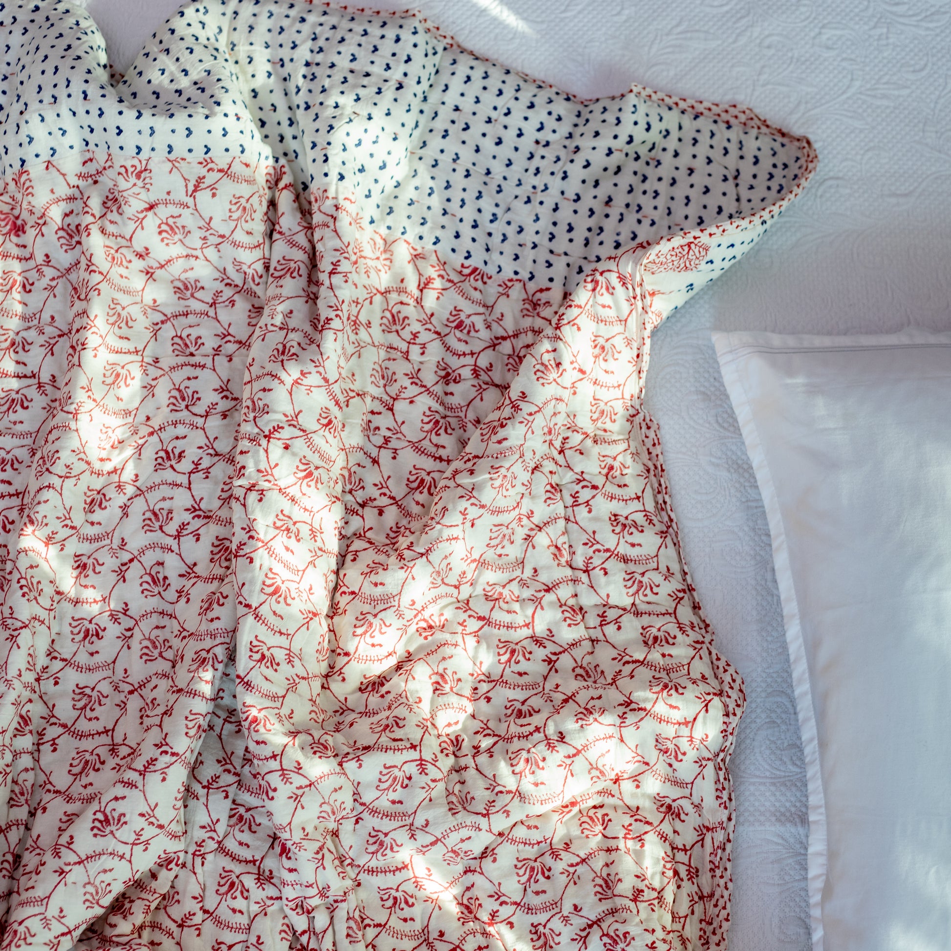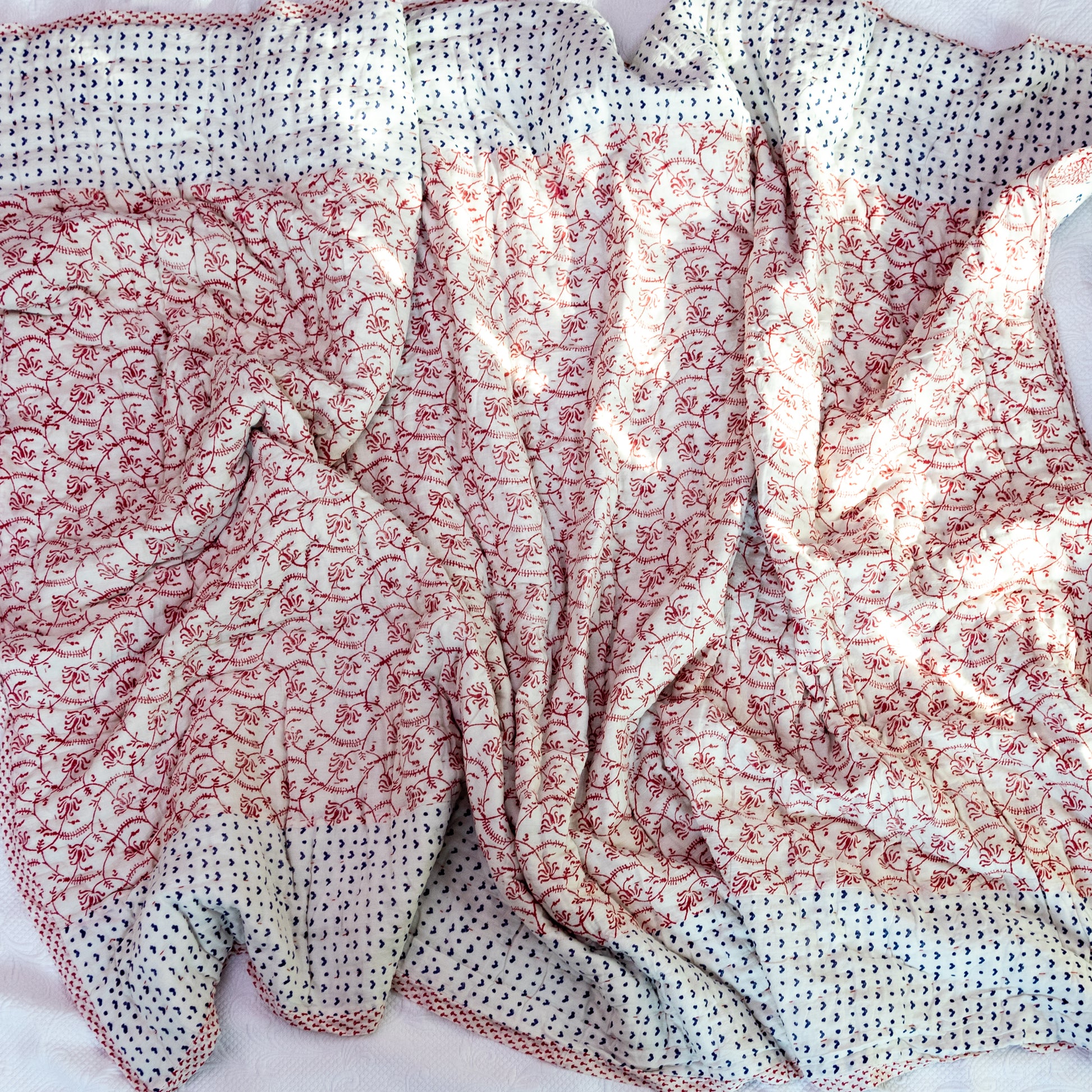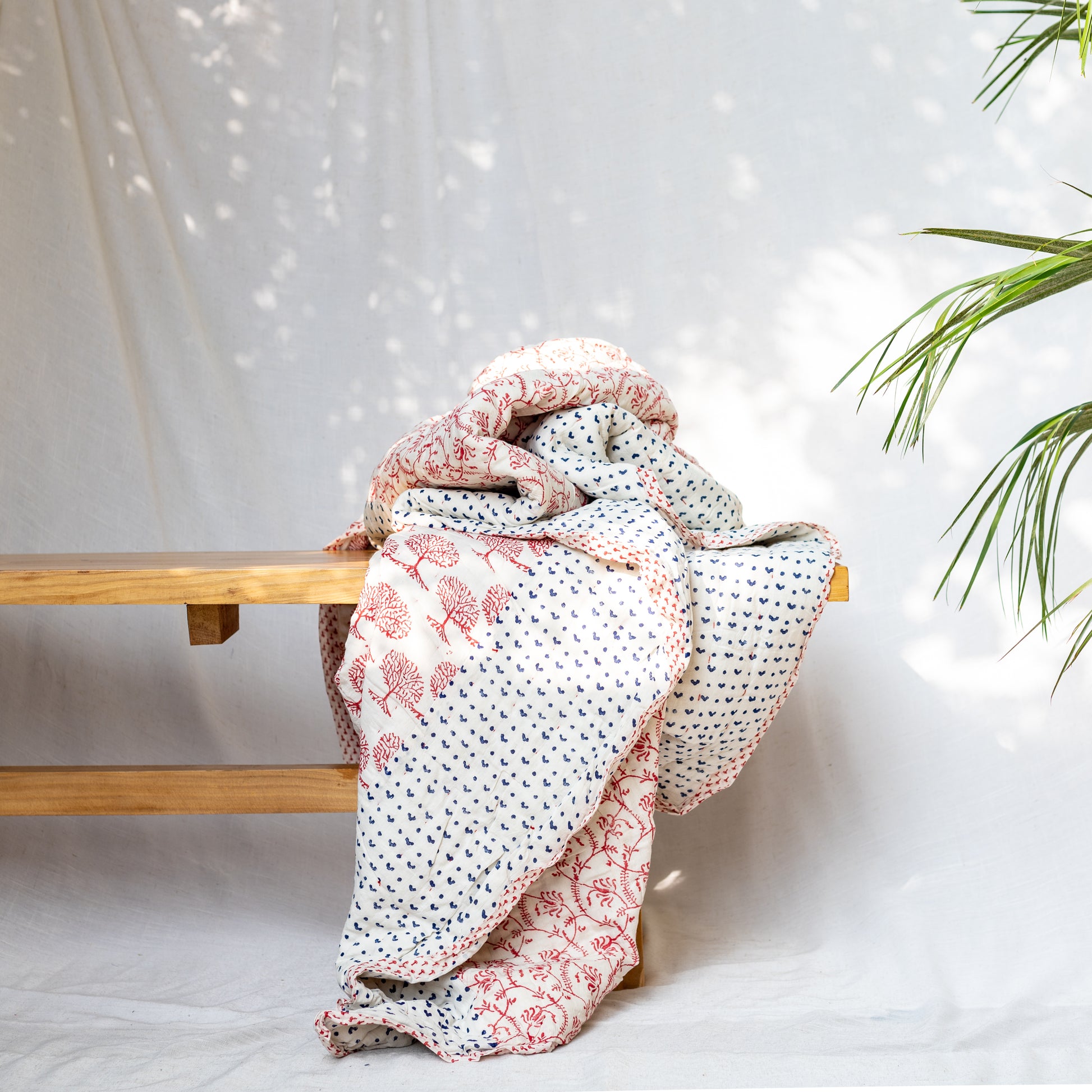 Tree of Life Dulai Single sized ivory dulai adorned with red Tree of Life blockprints, beautifully detailed with a patterned back.